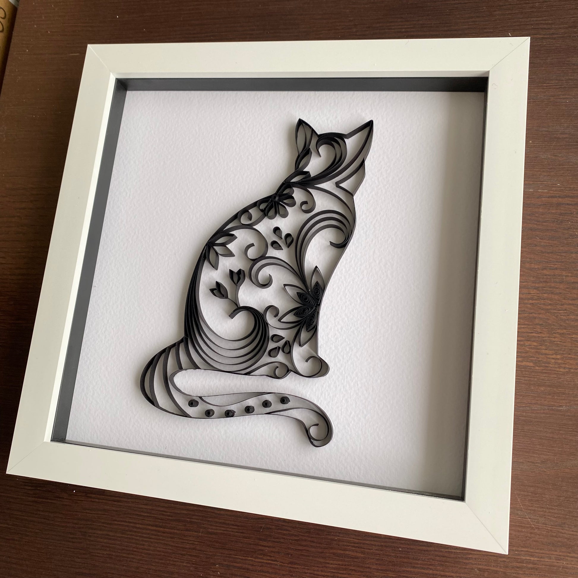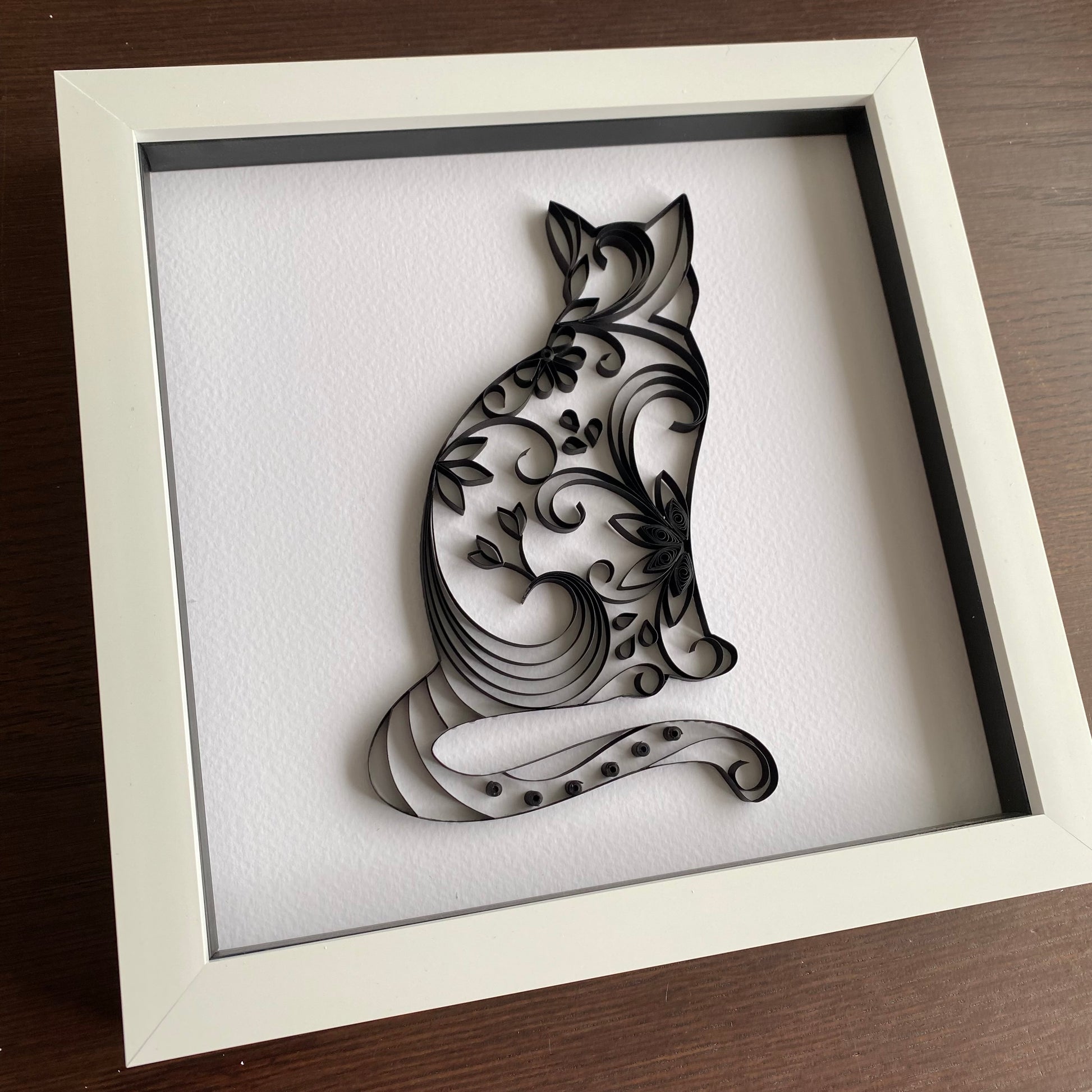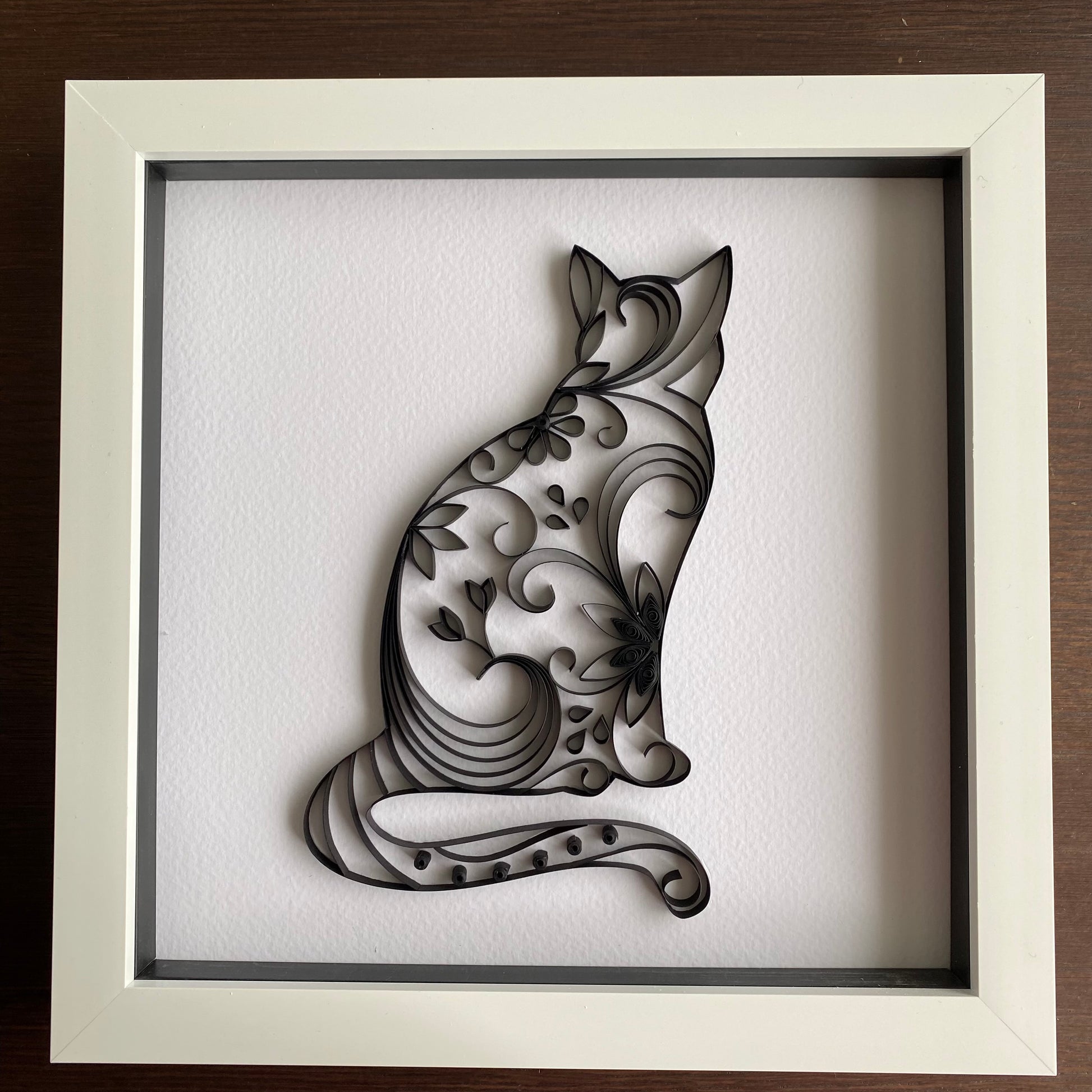Black cat quilling art that makes a great gift. Text can be added around the design at no extra charge.