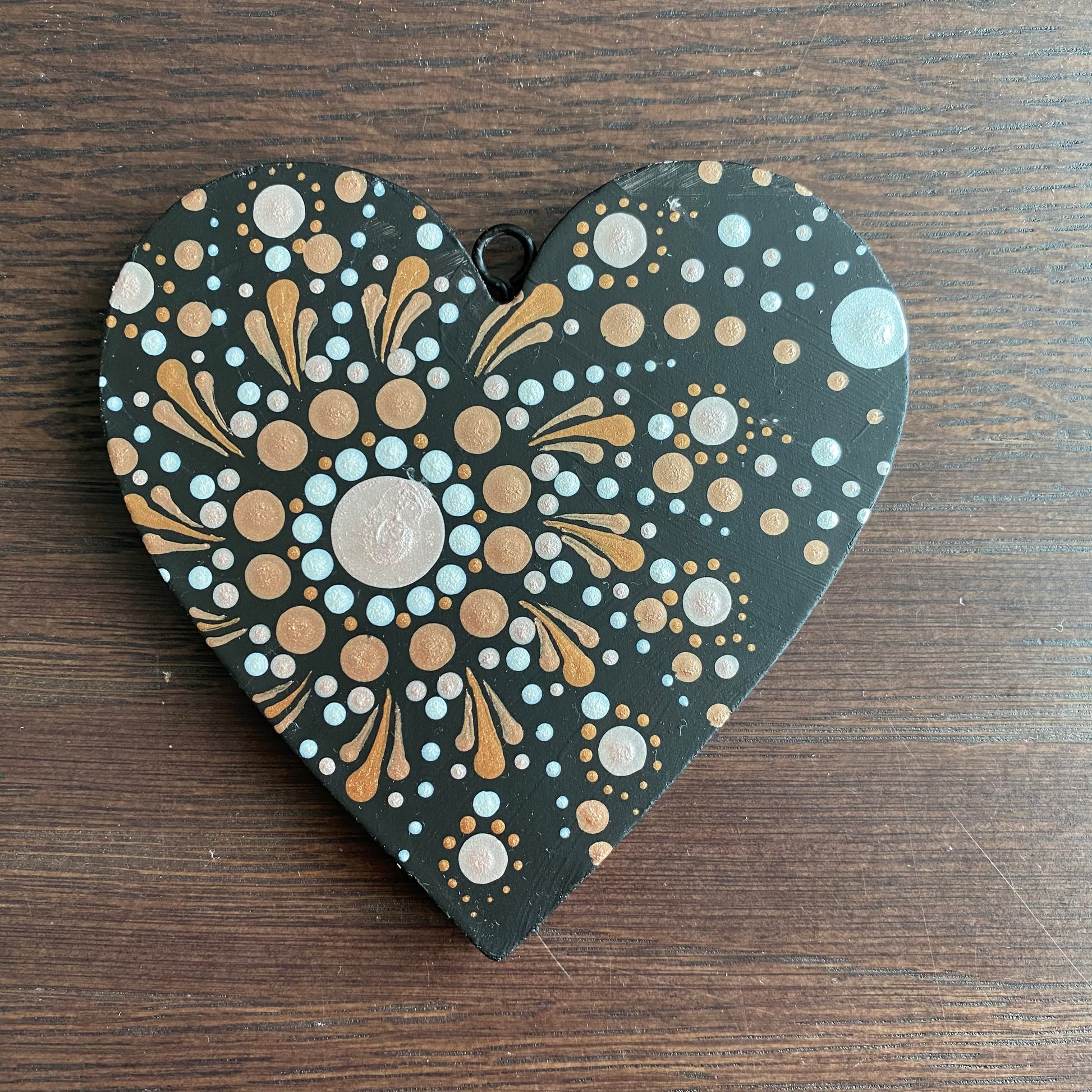 Copper Gold & White Dot Mandala Heart