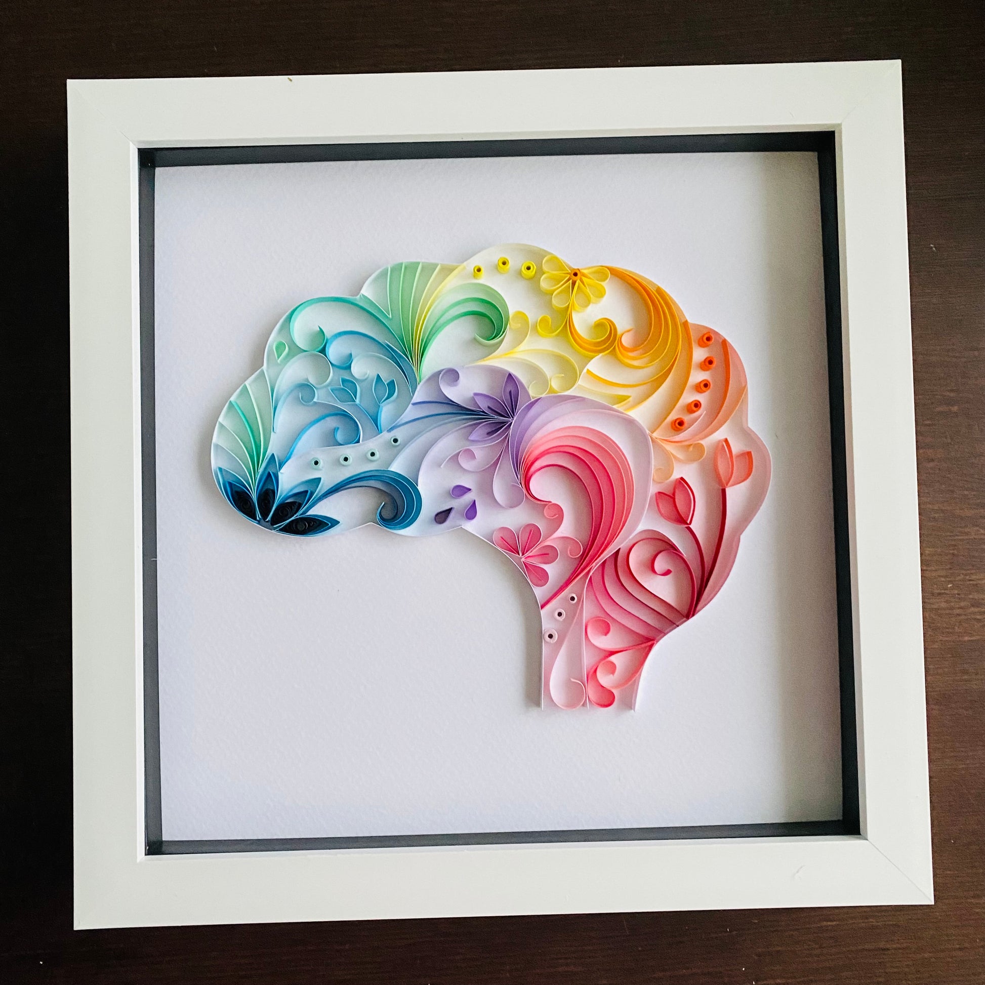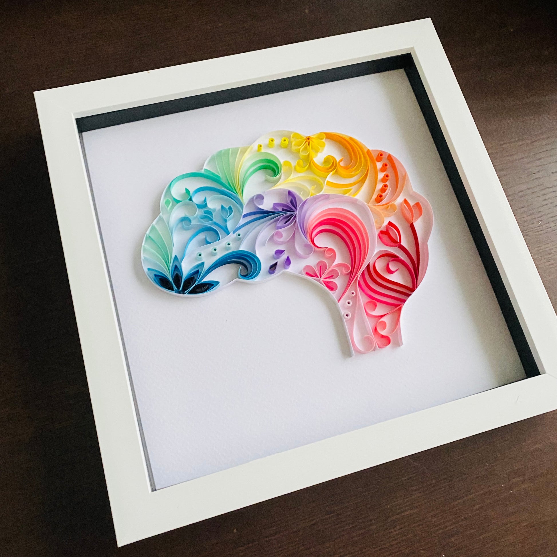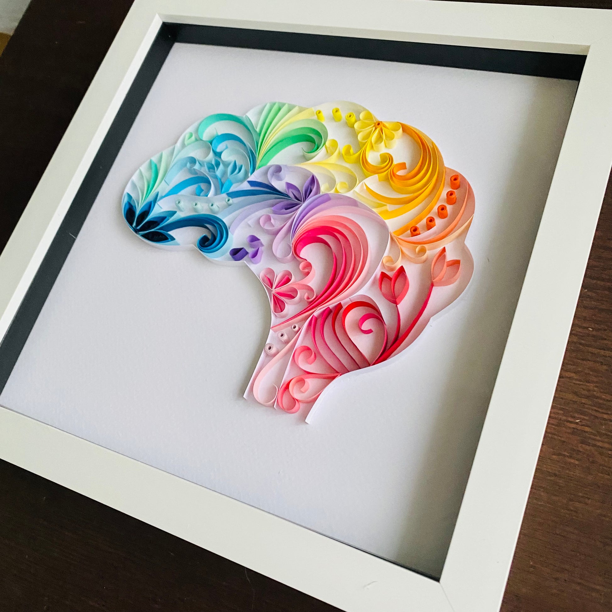 Rainbow brain quilling art that makes a great gift. Text can be added around the design at no extra charge.