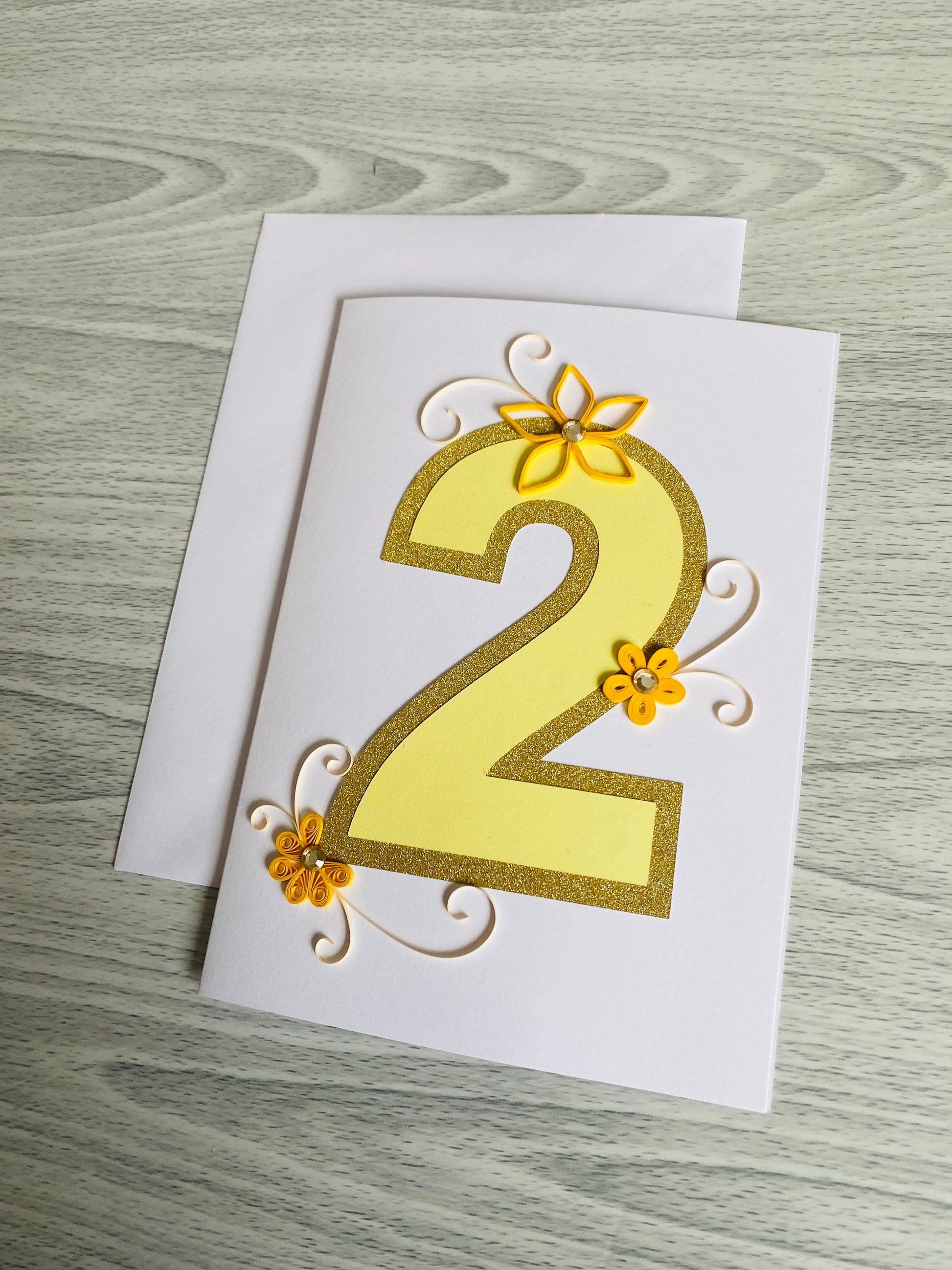 Made to order personalised quilled card with envelope. Each card can be created with the message of your choice on the front and inside the card.