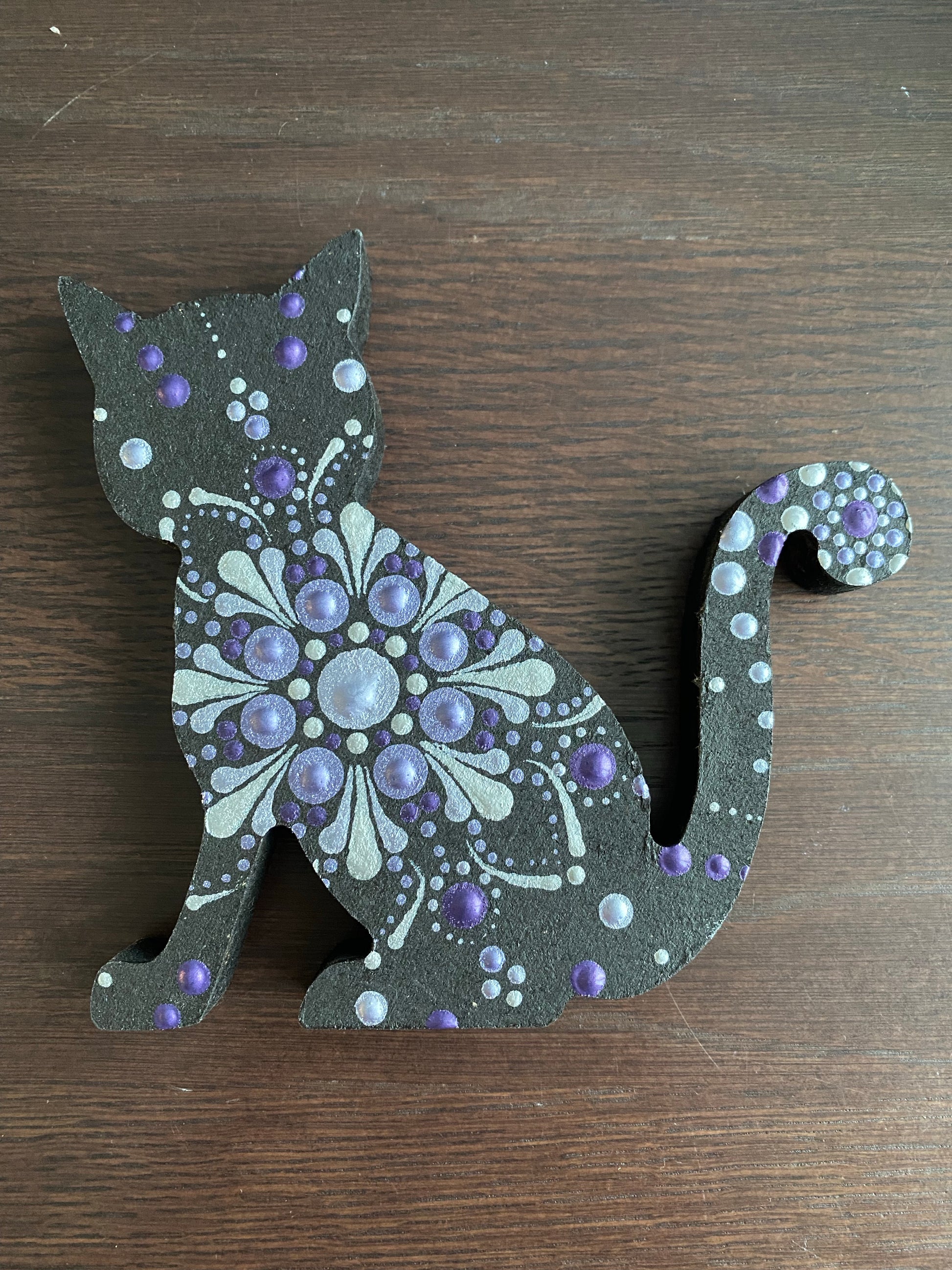 Purple & Silver Dot Painted Cat