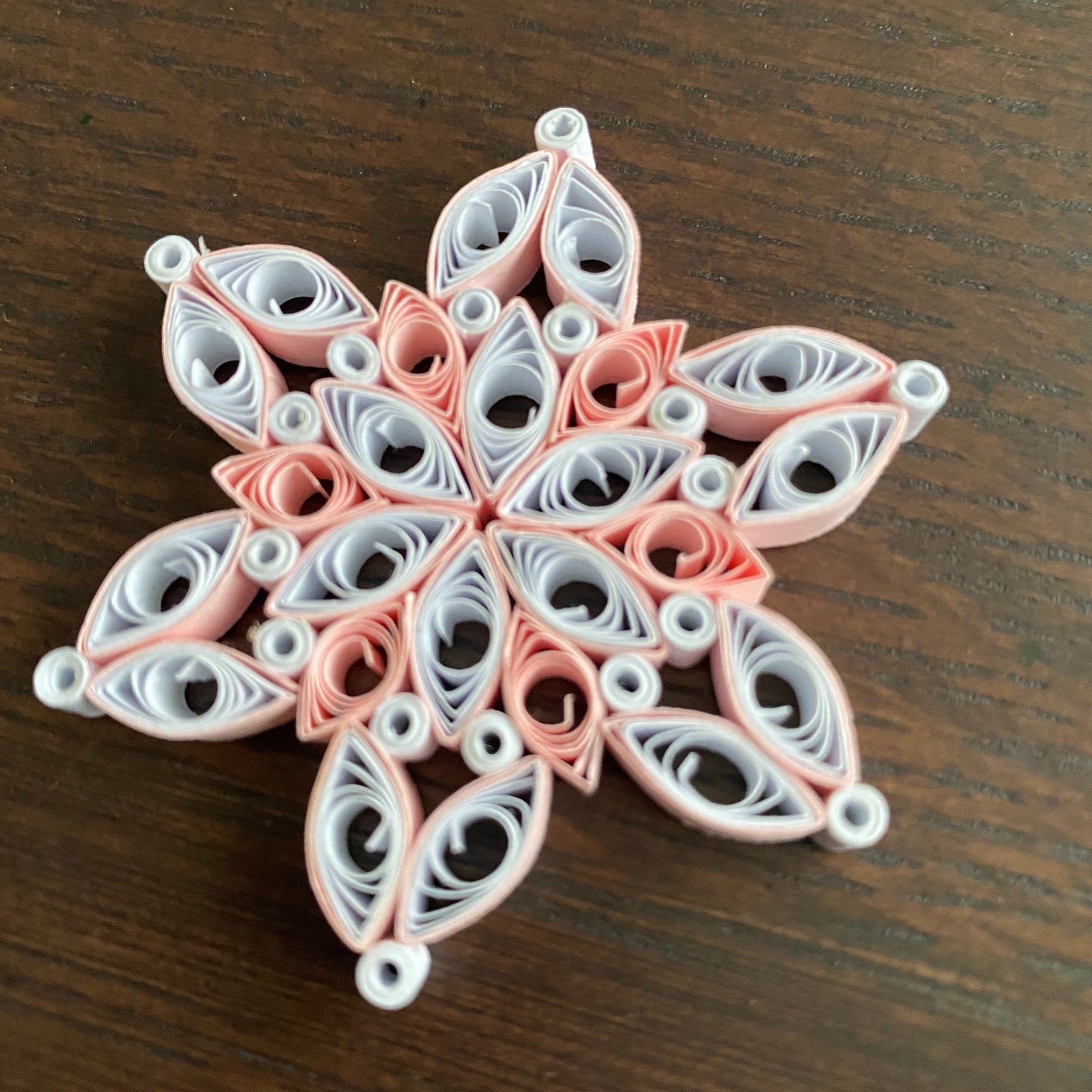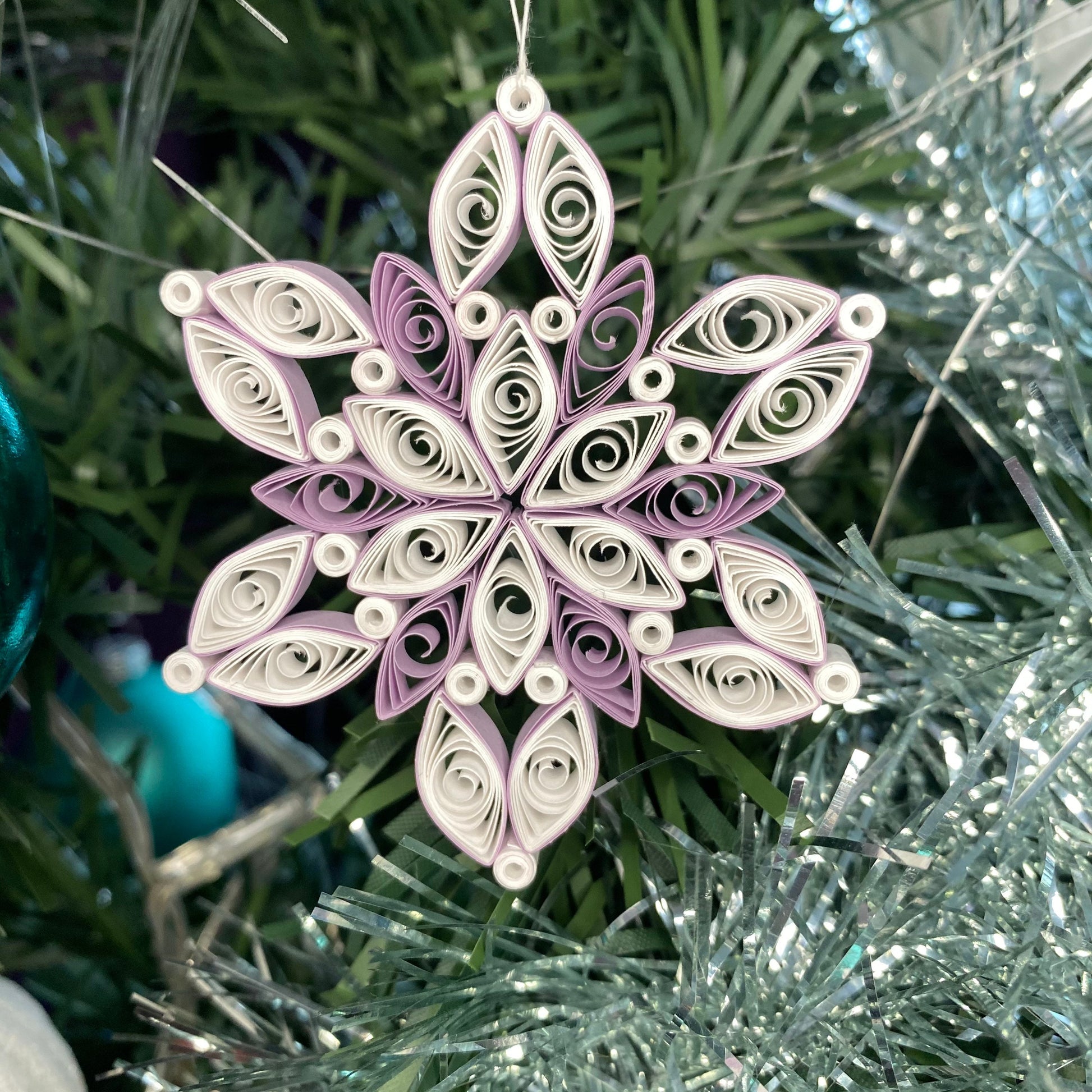 This beautiful handmade quilled snowflake makes a great addition to any Christmas tree.