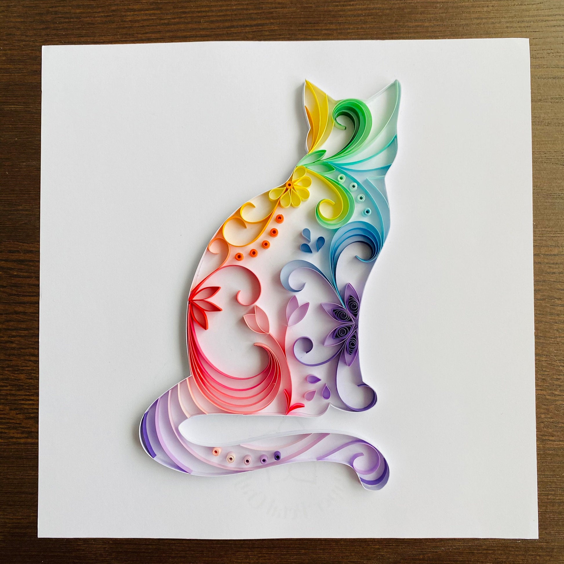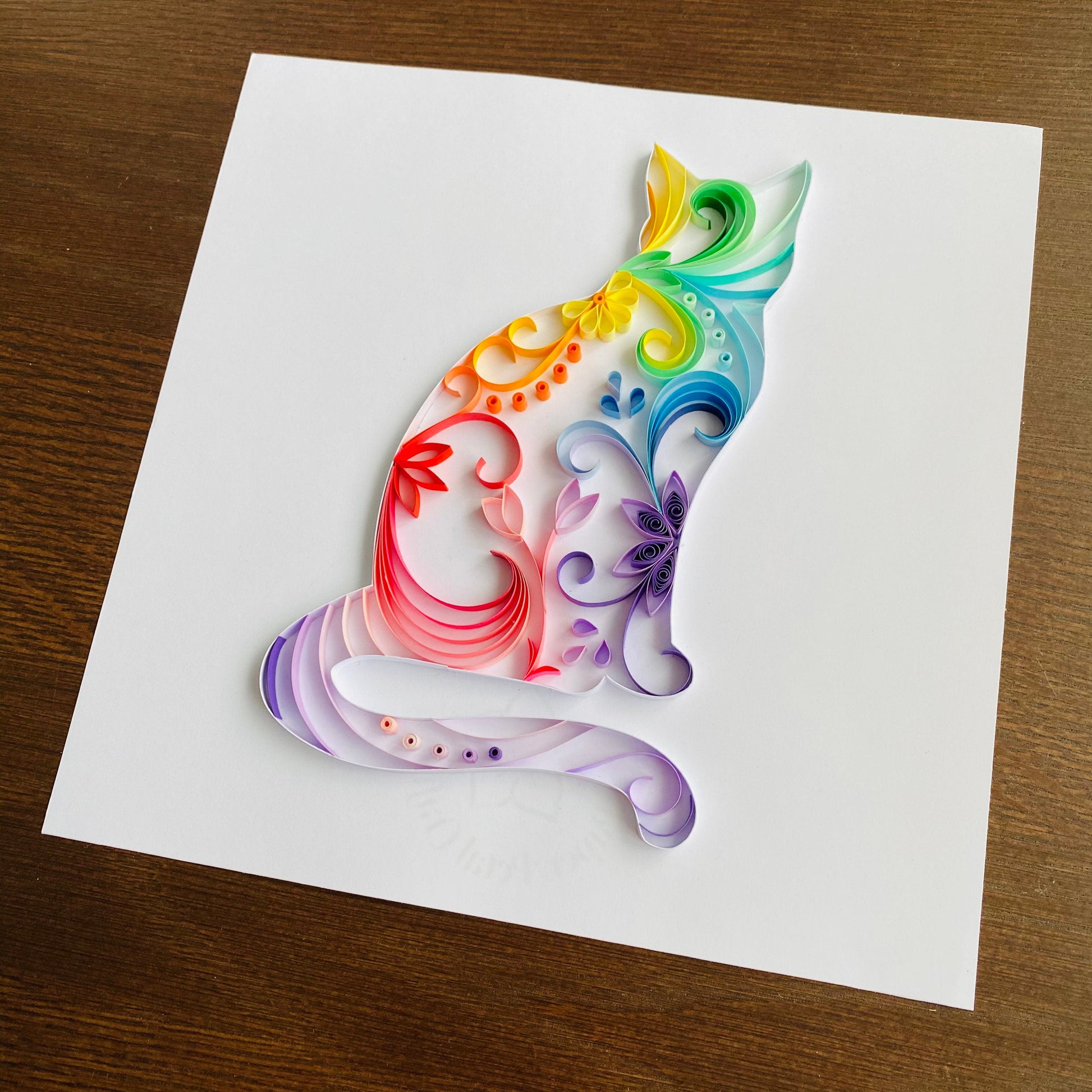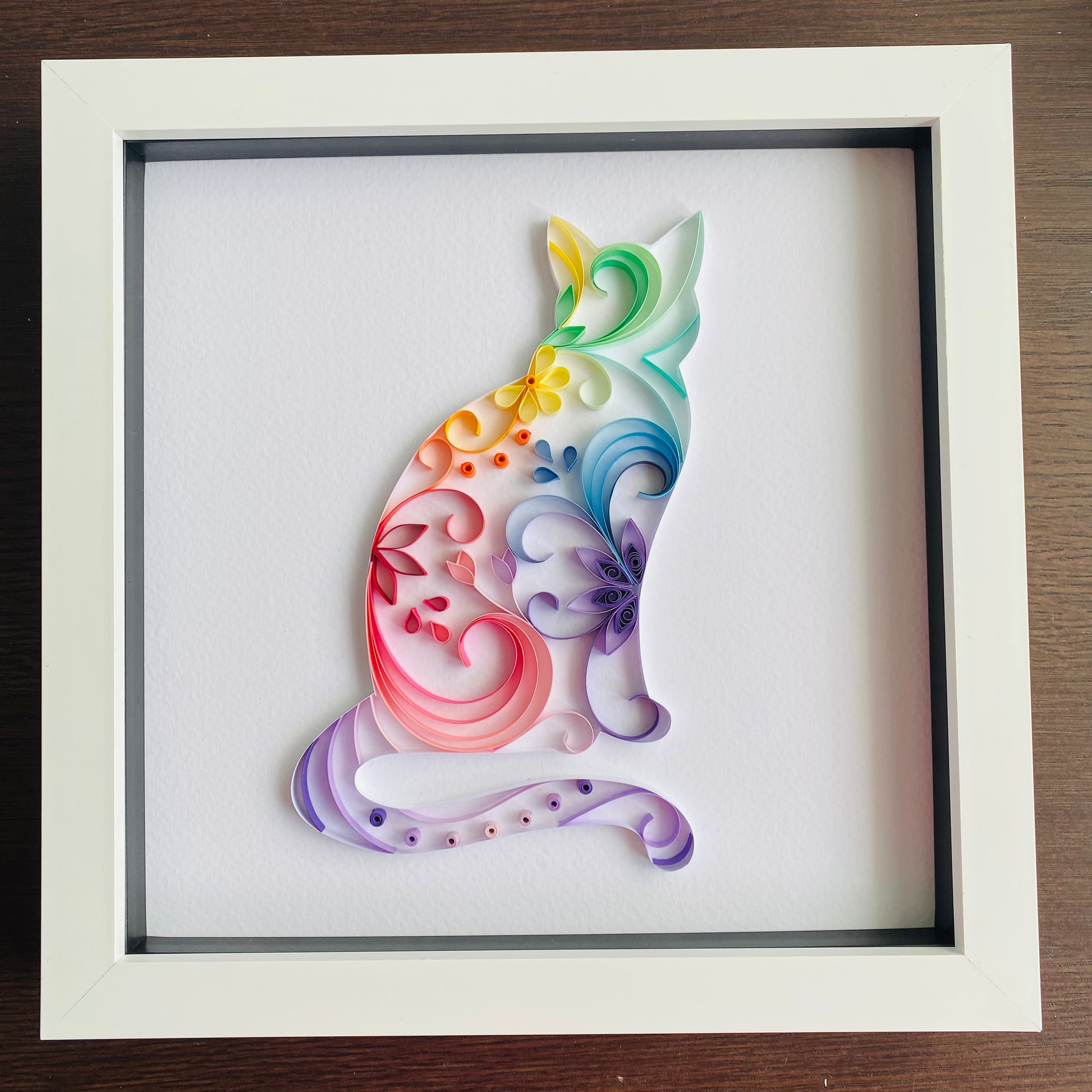 Rainbow cat quilling art that makes a great gift. Text can be added around the design at no extra charge.