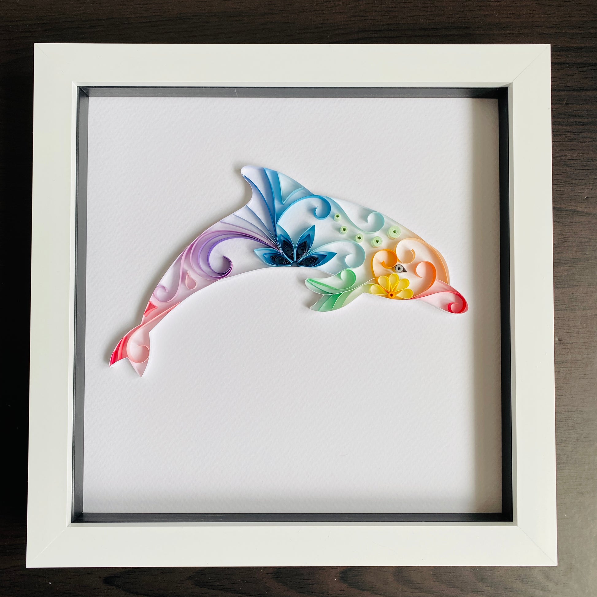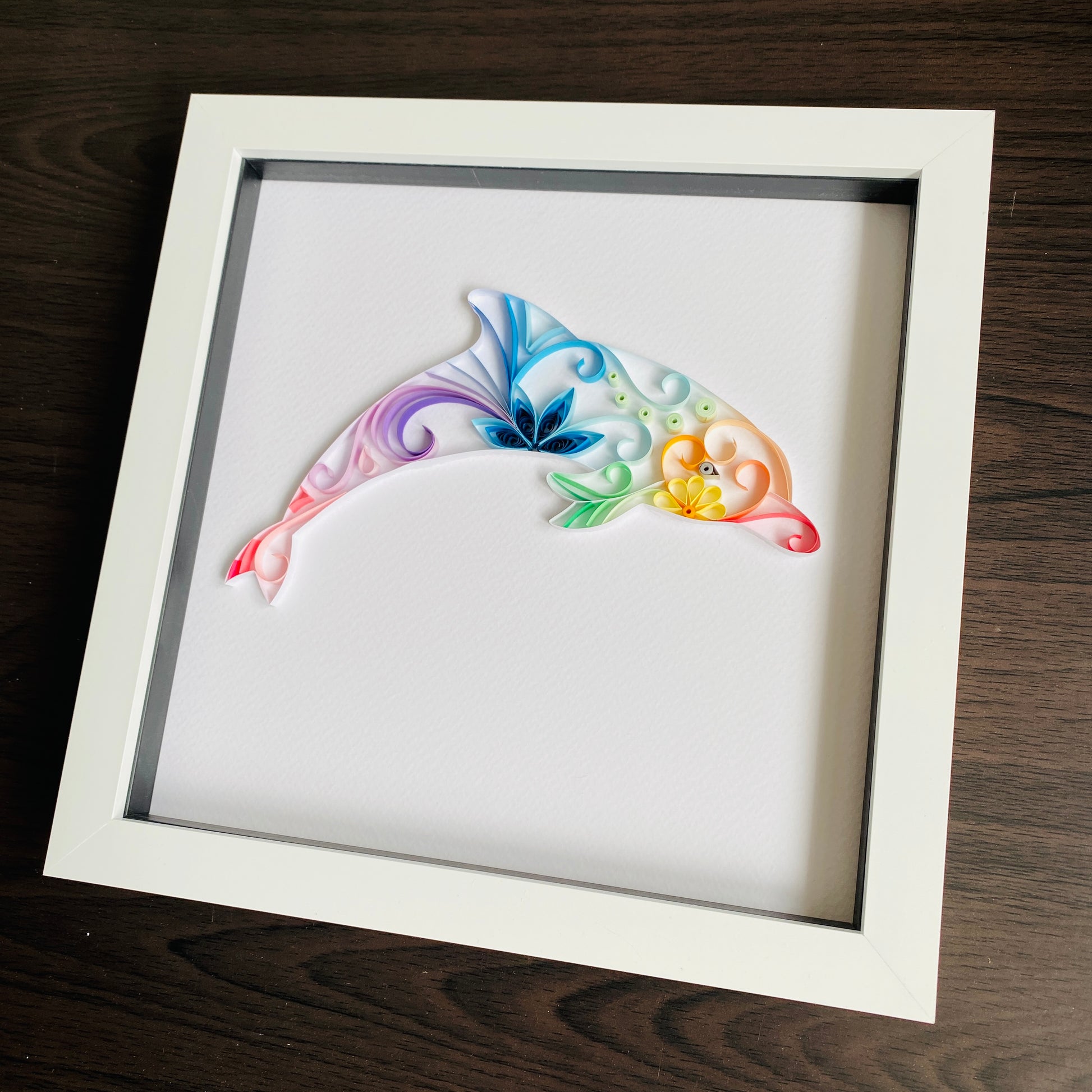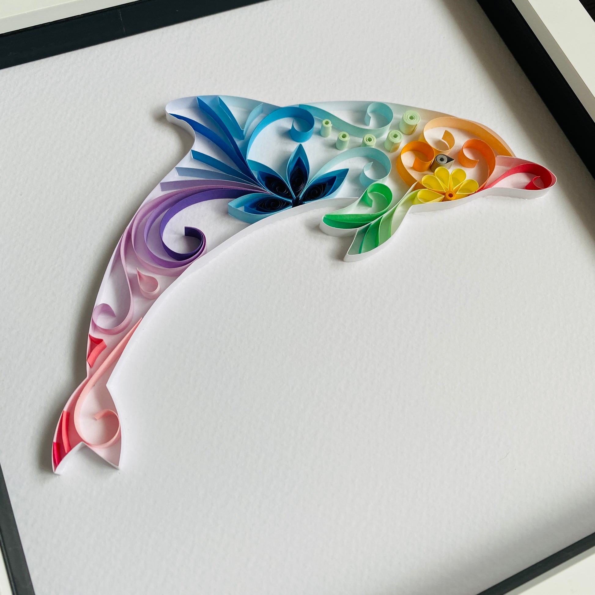 Rainbow dolphin quilling art that makes a great gift. Text can be added around the design at no extra charge.