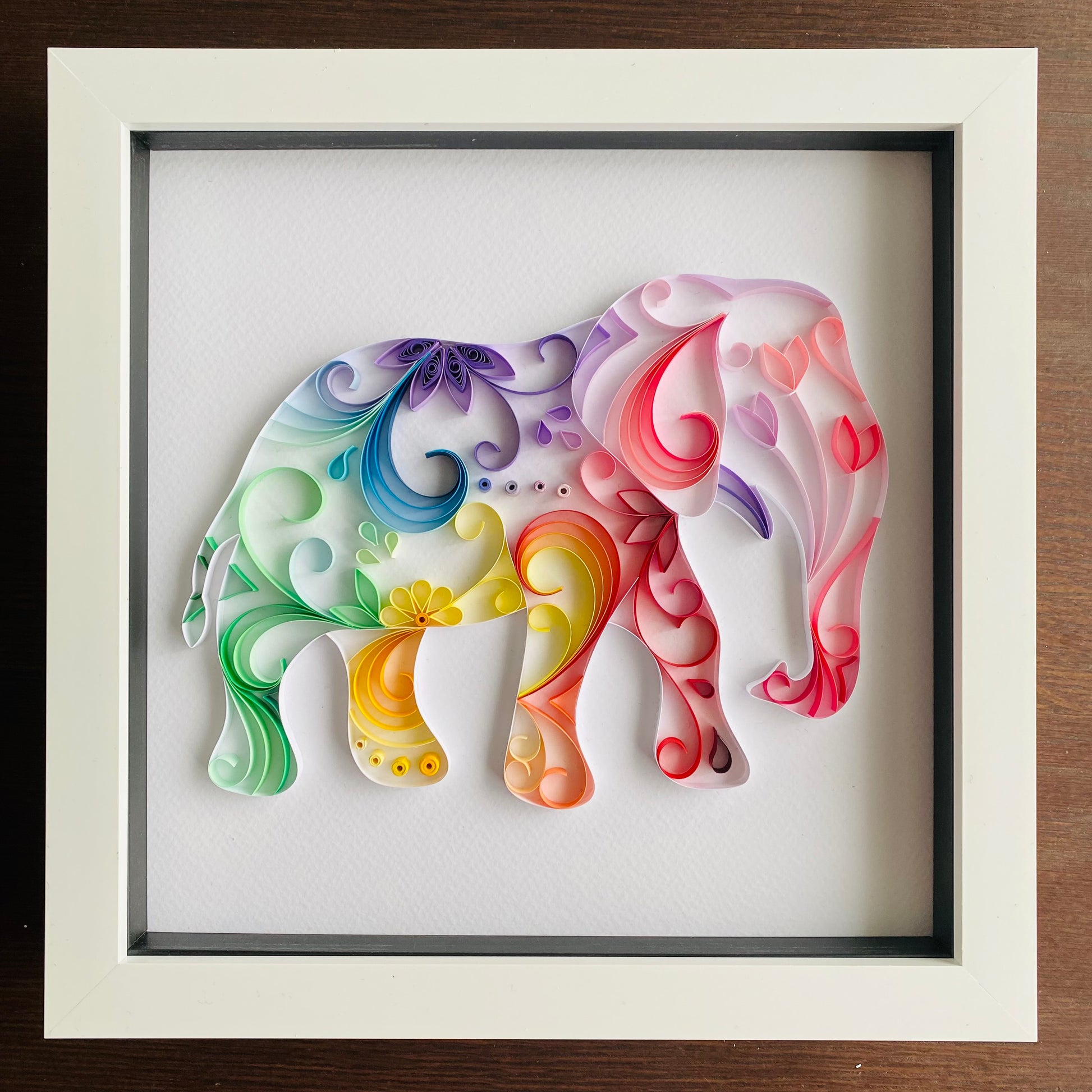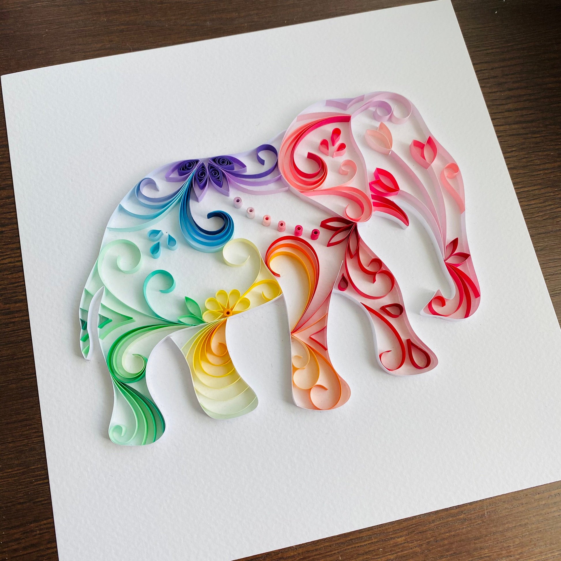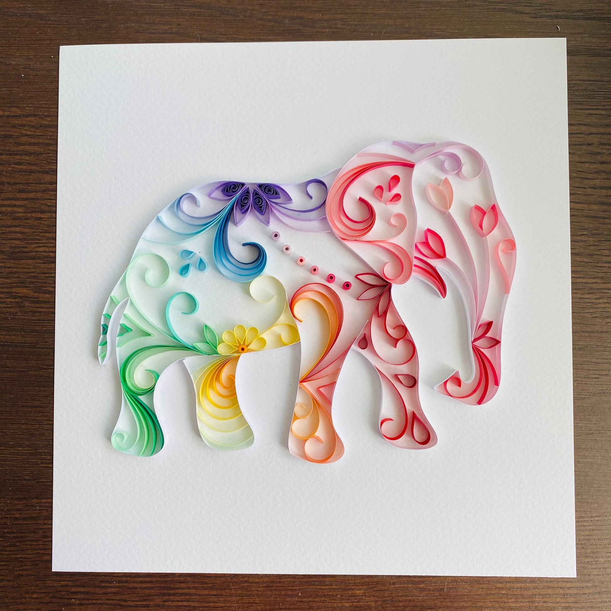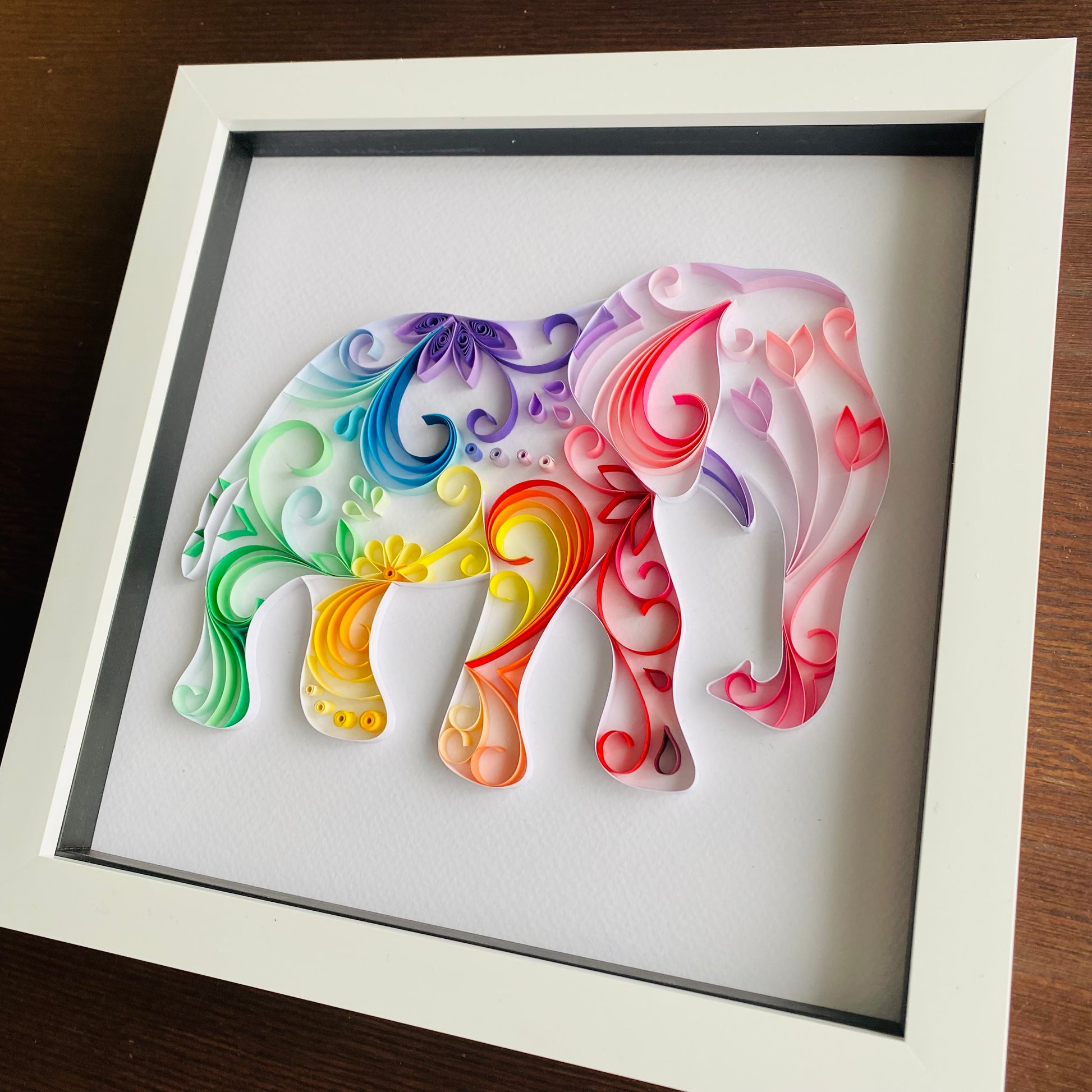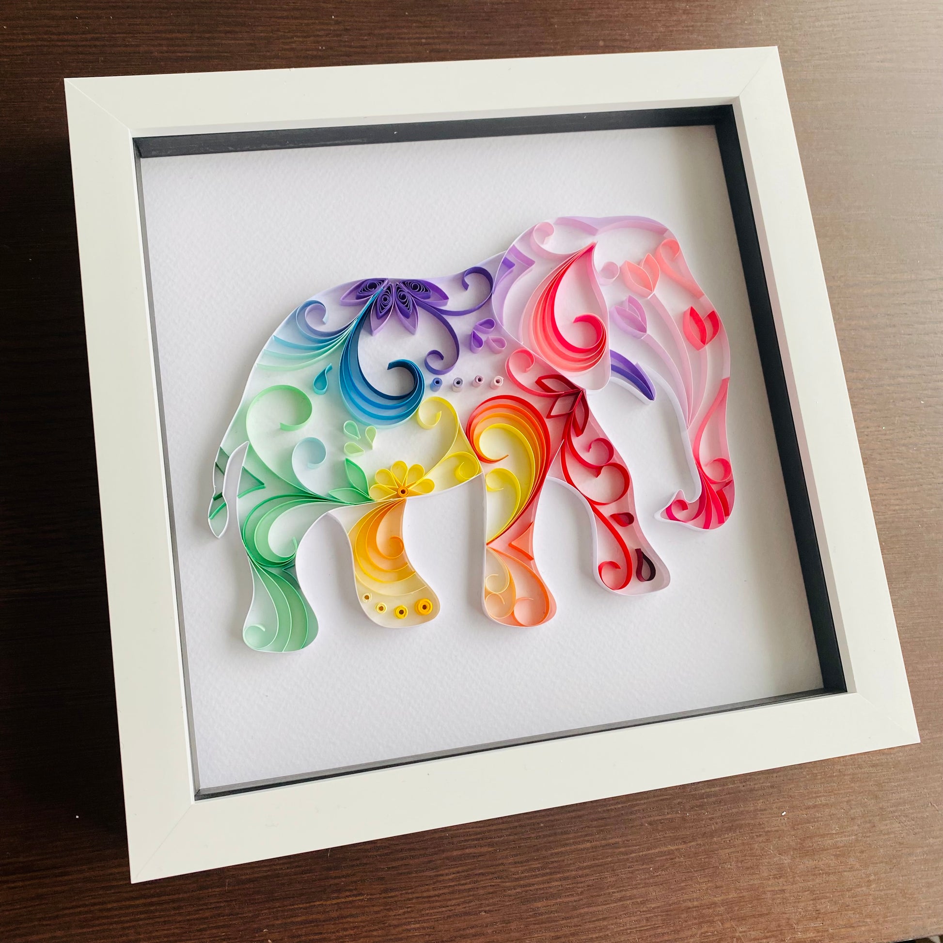 Rainbow elephant quilling art that makes a great gift. Text can be added below the design at no extra charge.