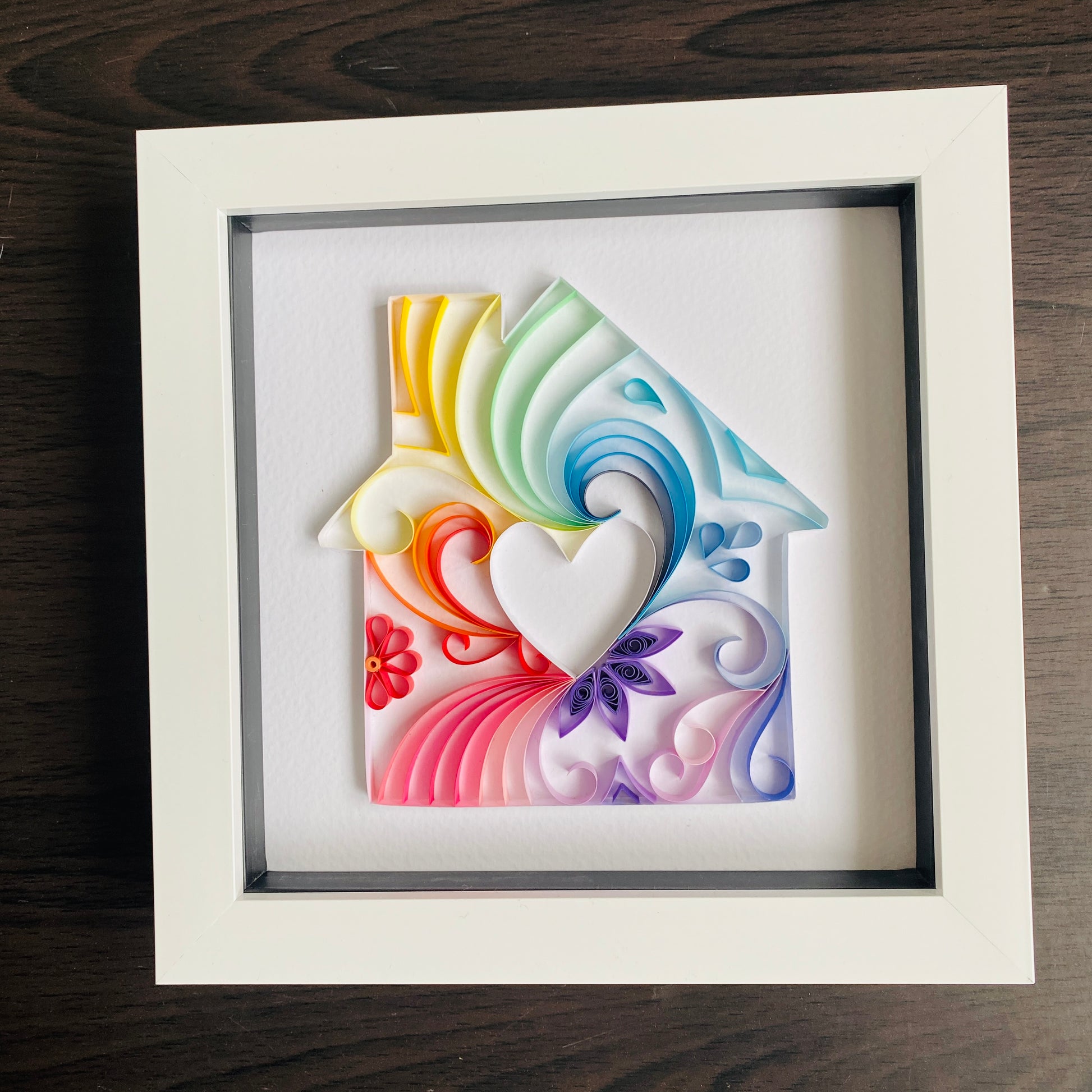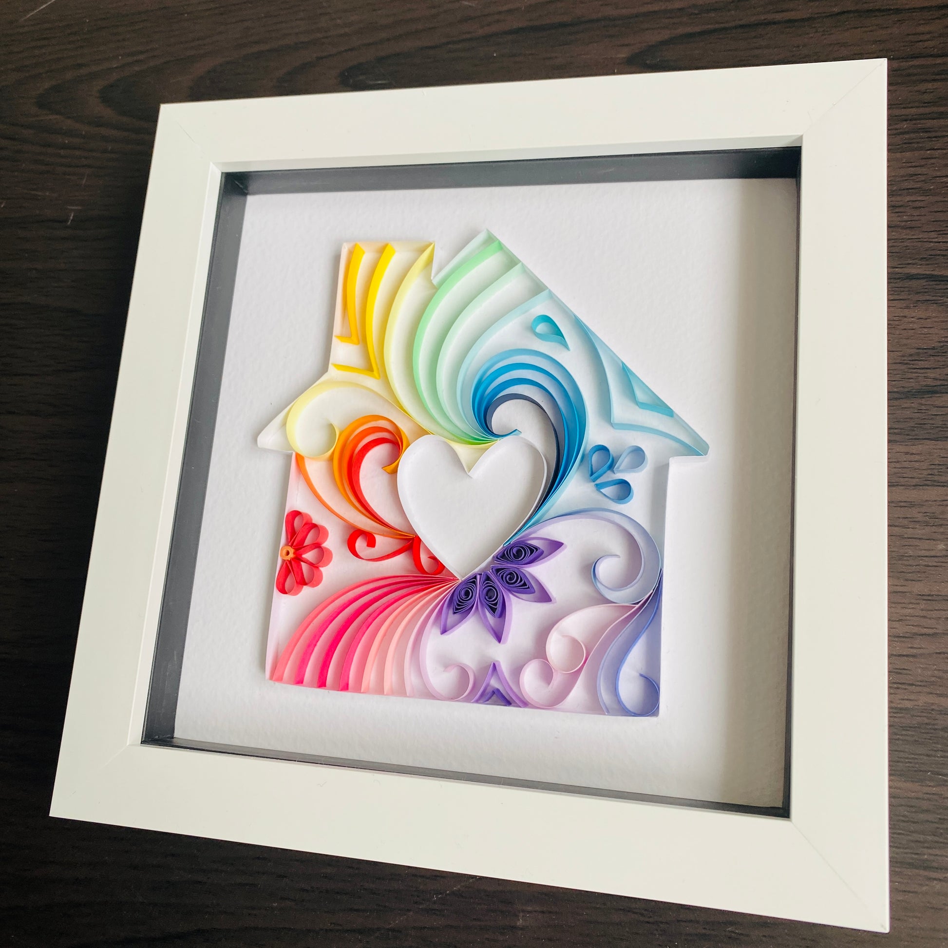 Rainbow House Print Quilling Art in Box Frame- great wall decor - can be personalised