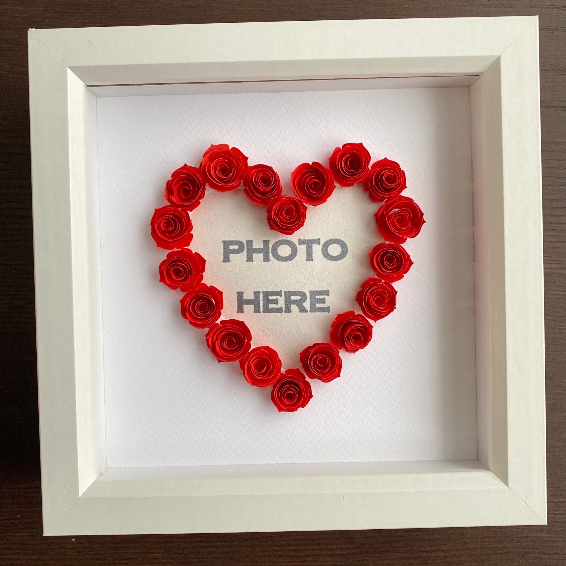 Rose heart photo frame which is made to order so can be created in the rose colour of your choice.